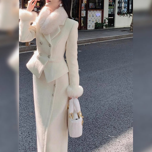Product information: Color: white coat, white skirt, white suit with fur collar Pants length: trousers Size: S,M,L,XL Style type: tem...