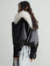 Retro Luxury Detachable Large Fur Collar Leather Jacket